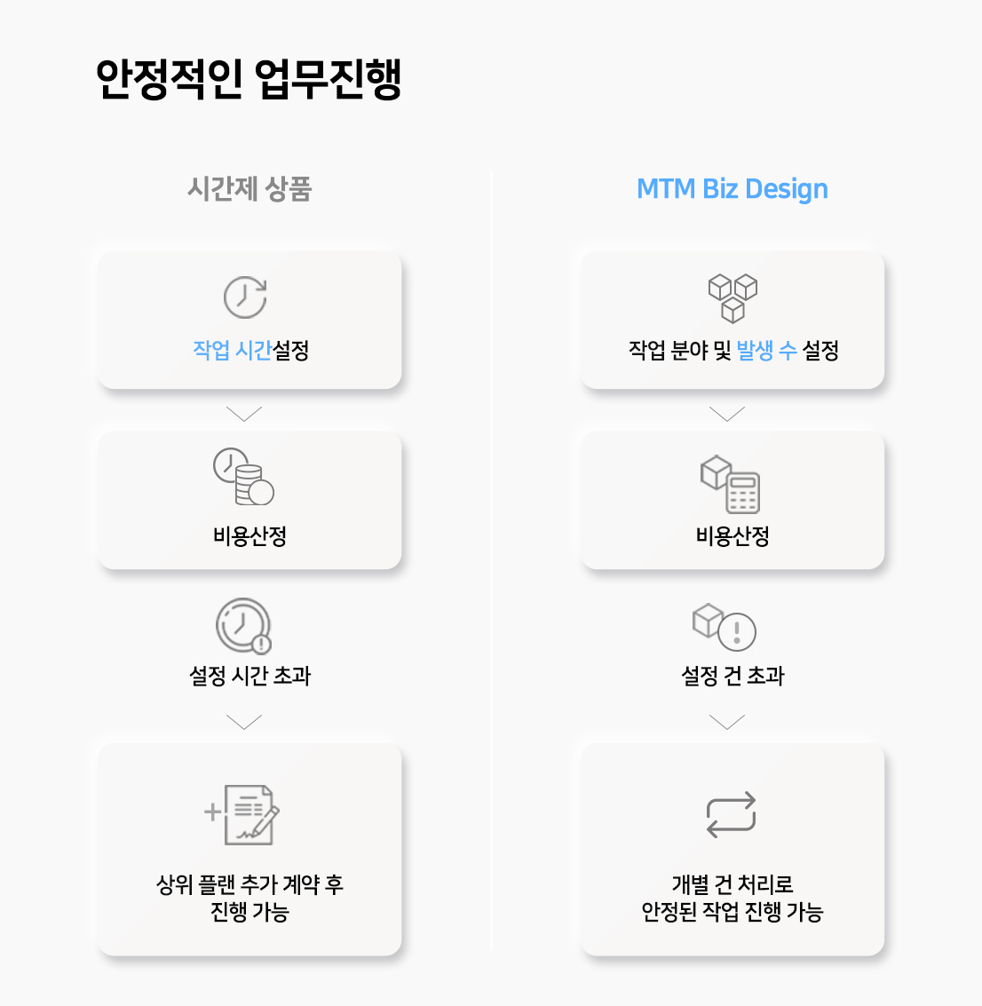 MTM Biz Design은 주기적인 디자인 제작과 유지 보수가 필요한 고객 니즈를 반영하여 각 분야별, 체계적인 시스템과 전문디자이너를 활용한 플랜형 아웃소싱 서비스를 제공합니다.