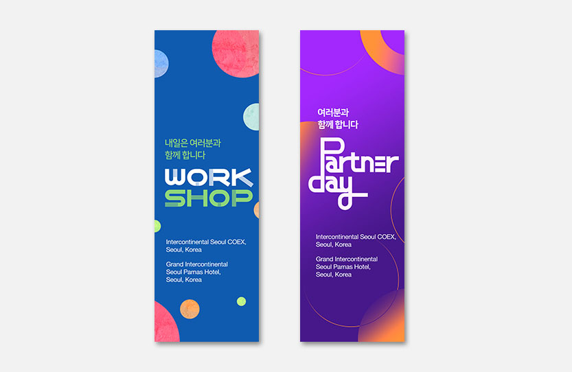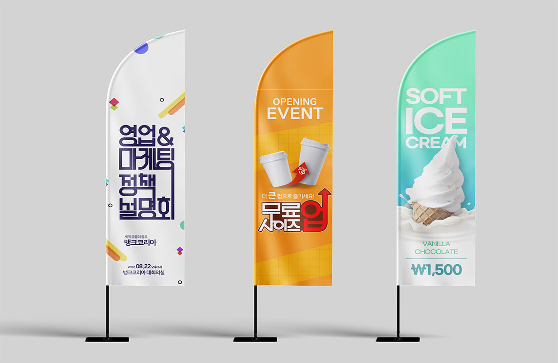 실내/외 홍보 목적의 다양한 크기의 배너를 제공하여 차별화된 행사진행을 지원합니다.